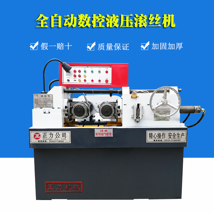 邢臺正力機械制造有限公司是國內(nèi)高端平價滾絲機專業(yè)化制造企業(yè)。 本公司是集研制、開發(fā) 、生產(chǎn)與銷售為一體的大型機械廠家,現(xiàn)主要產(chǎn)品有:滾絲機,螺紋機床,縮經(jīng)機,拔料機,冷軋壓圓機,雙組拉絲機等各種機械。地處燕趙大地南部邢臺市,是省級重合同、守信用、產(chǎn)品質(zhì)量穩(wěn)定型企業(yè),河北省消費者協(xié)會信的過產(chǎn)品,產(chǎn)品暢銷全國各地,深受用戶的好評。          現(xiàn)擁有Z28-40、80、150、200、280、63型系列在五金建筑、汽摩配件、交通電力、標(biāo)準(zhǔn)件制作等高精度產(chǎn)品加工行業(yè)中,對高強度螺紋、網(wǎng)紋、花鍵、直斜紋、梯形螺紋、特殊軸類的滾軋加工有很強的優(yōu)越性,以高效、精密、快捷的工作原理深受廣大用戶的信賴。         專用的液壓縮徑機WL-25、36、48、60、型操作簡便,適用范圍廣,生產(chǎn)效率高,使金屬擠壓快速成型,節(jié)約了原材料,提高了金屬密度和抗拉強度         本公司長期供應(yīng)各種滾絲輪、縮徑機模具等各種配件。          產(chǎn)品暢銷河北,河南,山西,山東、遼寧、黑龍江、吉林、北京、天 津等省市自治區(qū)。我們不斷引進國內(nèi)外先進技術(shù),不斷優(yōu)化產(chǎn)品結(jié)構(gòu),精心鑄造產(chǎn)品質(zhì)量。王力品牌系列滾絲機、縮徑機、絲杠機是根據(jù)國內(nèi)的先進機型加以改進,具有結(jié)構(gòu)設(shè)計科學(xué),結(jié)構(gòu)合理、能耗低、精度高、 使用壽命長等優(yōu)點。         我們正被更多的朋友接受,認(rèn)可,因為我們用真誠……